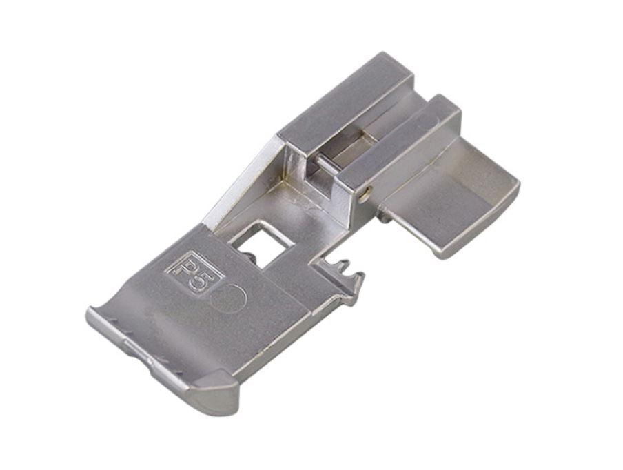 This foot has a special guide groove in its sole. The cording or cord is precisely fed via this groove and can be inserted between two layers of fabric professionally.